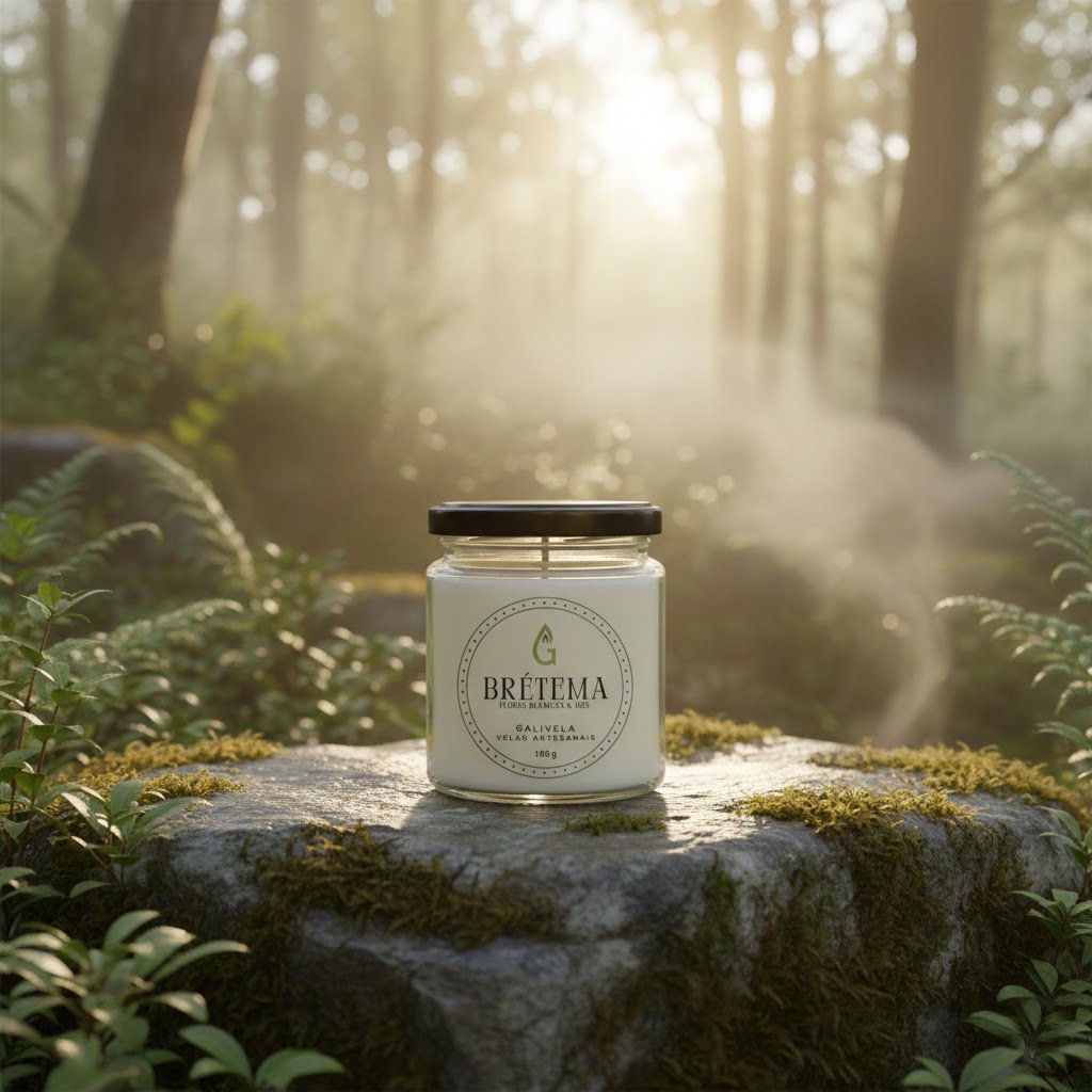 Brétema – Flores Blancas & Iris es una vela artesanal elaborada con cera vegetal y una fragancia floral refinada que envuelve el ambiente con una sensación de pureza, elegancia y serenidad.